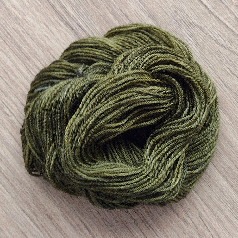 Hand Dyed Yarn Mini – 4 Ply  75/25 Superwash Merino/Nylon 20g. Tonal shades of moss green. Perfect for making socks.